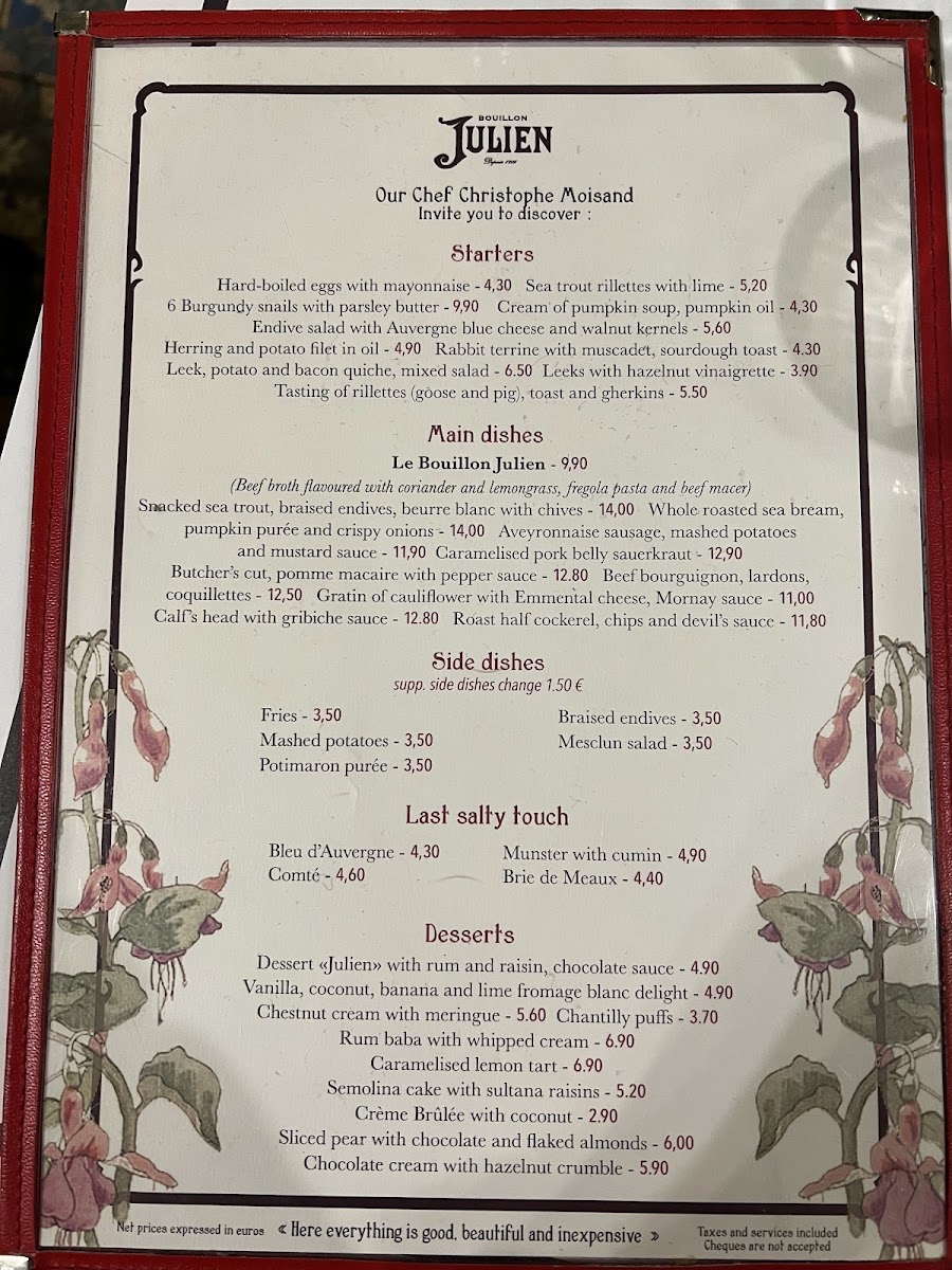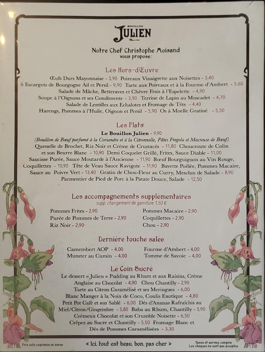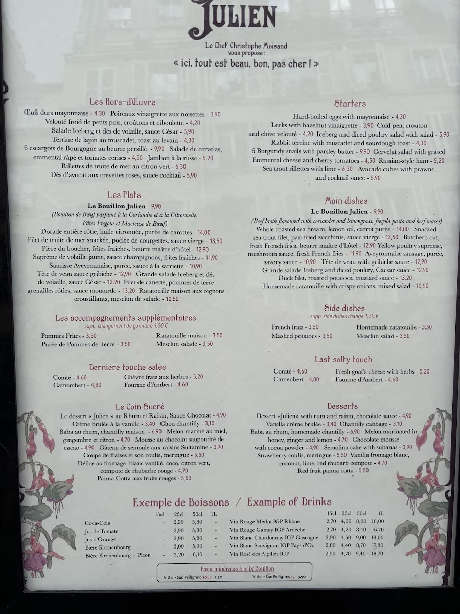 Bouillon Julien Menu
